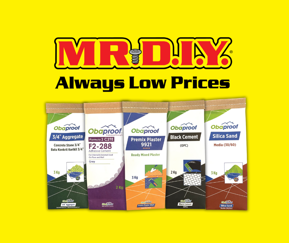 Obaproof mini pack construction materials are now officially on the shelves at MR D.I.Y. Klang Valley