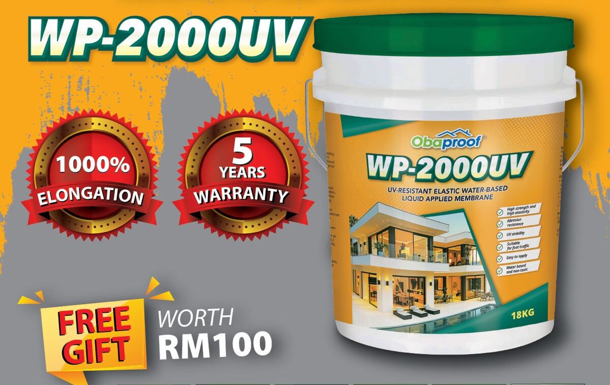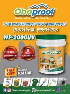 To celebrate the official launch of WP-2000UV, OBAPROOF is offering an exclusive promotion — purchase one 18KG pail of WP–2000UV and receive a free gift worth RM100. Experience top-quality waterproofing and receive an exclusive gift to enhance your project.