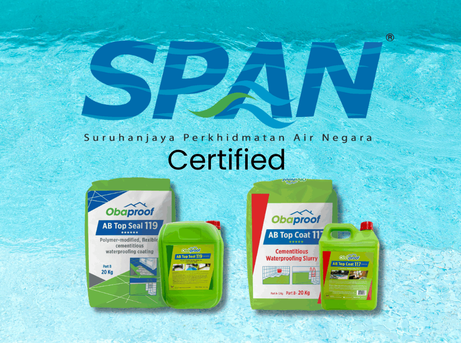 Tags Company October 10, 2025 SPAN Certified Waterproofing Coating: AB Top Seal 119 & AB Top Coat 117 We are happy to announce that Obaproof AB Top Seal 119 and AB Top Coat