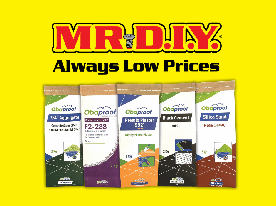 Tags News August 15, 2025 Obaproof Is Now Available at MR D.I.Y. Obaproof mini pack construction materials are now officially on the shelves at MR D.I.Y. Klang
